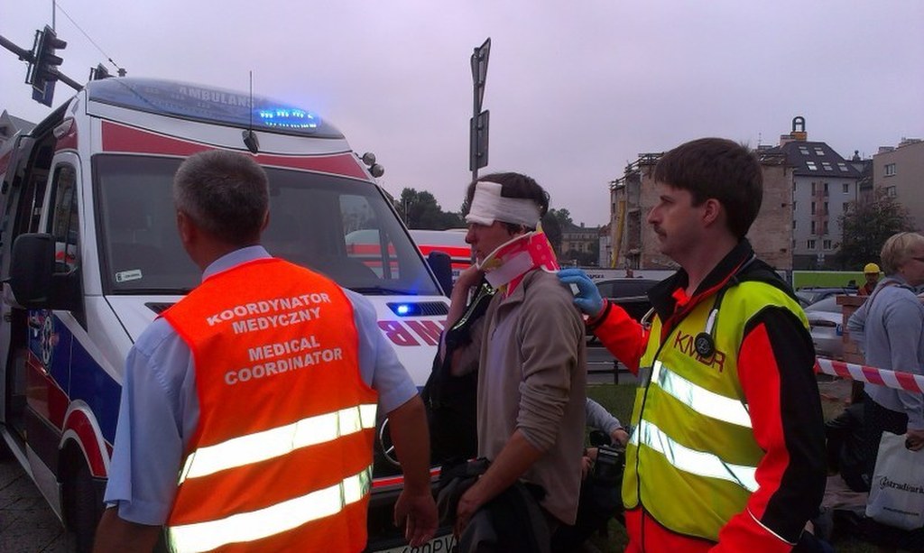 Uderzyłem tyłem głowy w szybę. Dużo osób poszkodowanych, zaraz panika, widziałem zakrwawione osoby, huk z tyłu - opowiadał naszej reporterce pasażer jednego z tramwajów. Wszyscy się poprzewracali - wszyscy, co stali. Tak że była bardzo duża siła uderzenia - dodała pasażerka.