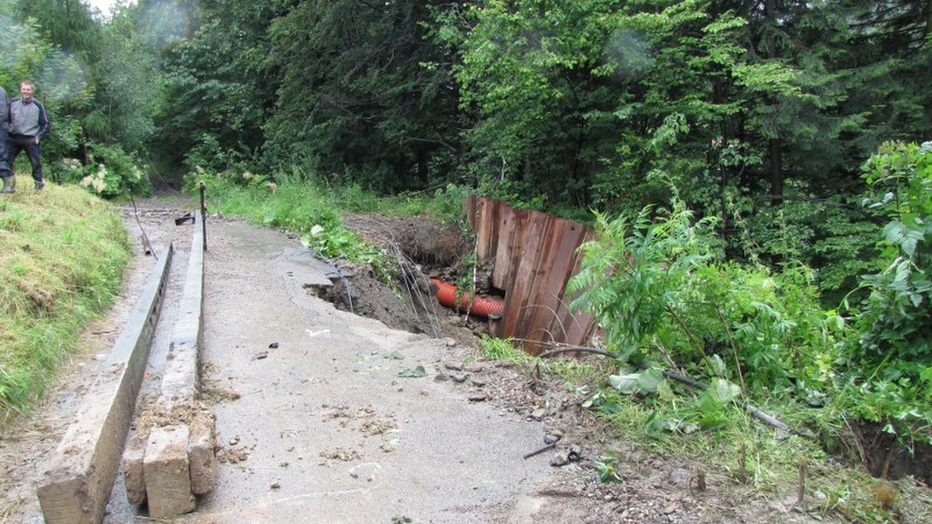 Wójt Lipowej Stanisław Caputa powiedział, że wezbrany nurt potoku porwał most na drodze gminnej. Było to nowa konstrukcja. Powstała kilka miesięcy temu, gdy naprawialiśmy i regulowaliśmy brzegi potoku po ubiegłorocznej powodzi. Teraz okazało się, że to nie wystarczyło - dodał. Ulewa podmyła również drogę do przysiółka Podlas i stojący przy niej słup energetyczny. Dojazd do wielu budynków jest utrudniony. Energetycy, starają się przywrócić dostawy prądu.