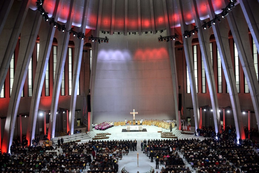 Msza była rozpoczęciem 3-dniowych uroczystości otwarcia świątyni. Uczestniczyli w niej między innymi prezydent Andrzej Duda z małżonką, marszałkowie Sejmu i Senatu Marek Kuchciński i Stanisław Karczewski oraz premier Beata Szydło.