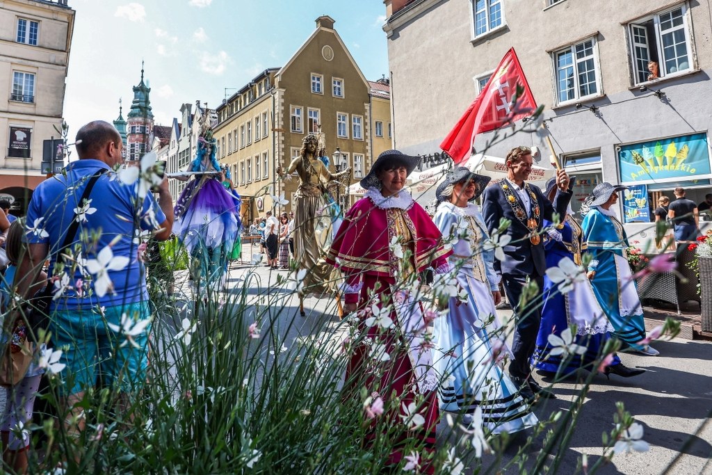 Wśród licznych postaci pojawił się Złoty Hermes, patron kupców oraz Karmazynowy Kogut - symbol Jarmarku św. Dominika, a także postaci alegoryczne, kuglarze, żonglerzy oraz grupy rekonstrukcyjne: Garnizon Gdańsk, Kompania Kaperska i Patrycjuszki. Bóg mórz i oceanów - Neptun - także przyłączył się do przemarszu.