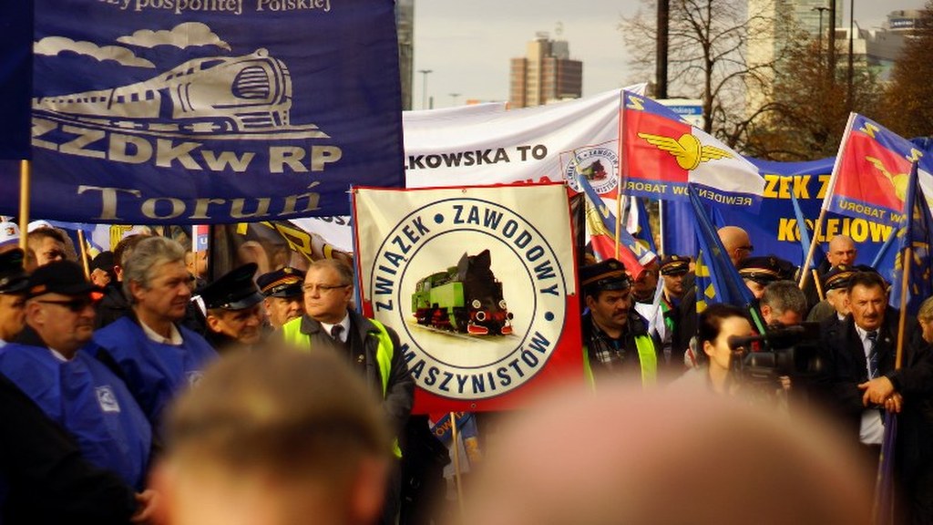 Według służb porządkowych na ul. Chałubińskiego przed MIR zebrało się ok. 400 związkowców. Trzymali transparenty z napisami: "żądamy konsolidacji sektora przewozów regionalnych", "kolej marszałkowska to destrukcja i patologia na koszt podatnika". W manifestacji uczestniczą m.in. związkowcy z Solidarności, OPZZ i związku maszynistów.