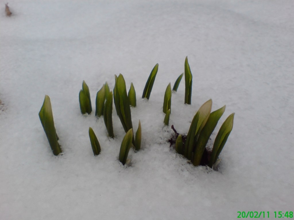 Spod śniegu odważnie wychyliły liście czosnku niedźwiedziego, ale zżółkły zważone przez mróz. Dookoła roznosi się jego intensywny zapach. Na polanie zakwitły przebiśniegi. Wychylają łodyżki i pączki kwiatów ponad śnieg. Rosną pojedynczo i całymi kępkami.