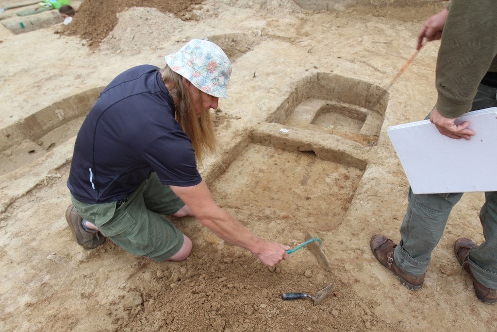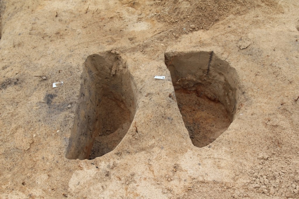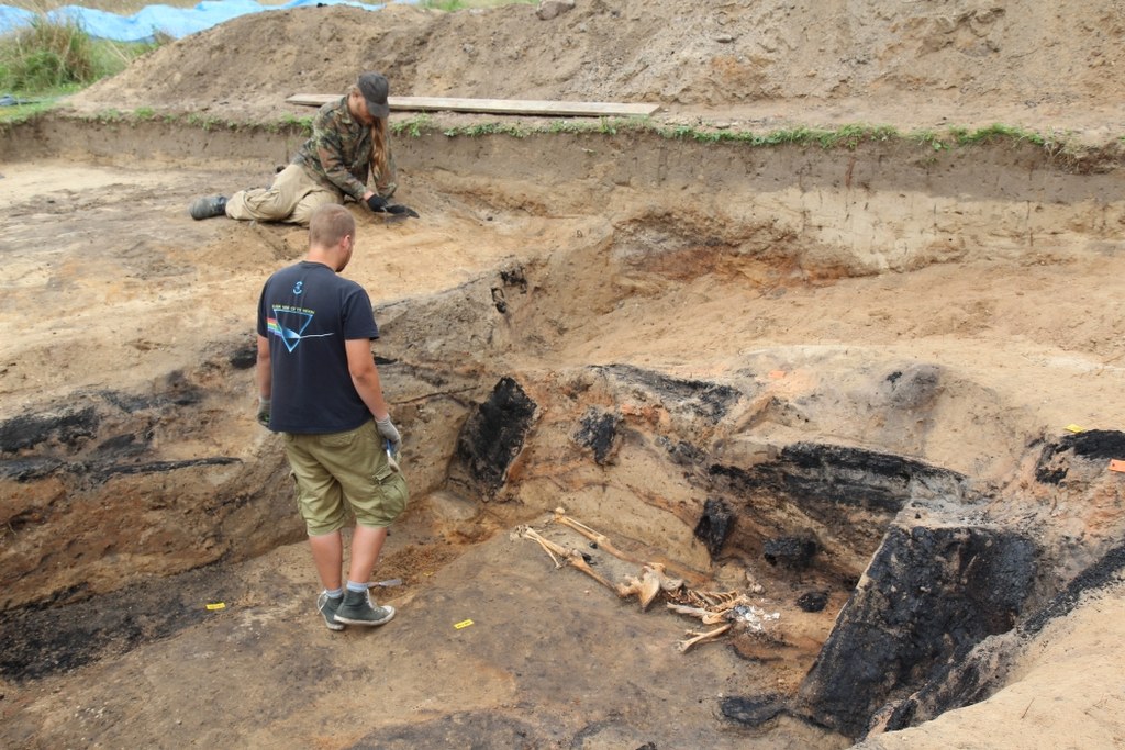 Archeolodzy kontynuowali również badania cmentarzyska, znajdującego się w północno-wschodniej części osady. Niestety nie wszystkie szkielety są dobrze zachowane. Teraz pod koniec prac znaleźliśmy te dobrze zachowane. Mamy kilka grobów dziecięcych i dorosłych. To, co widać u dorosłych, to mocno rozwinięte przyczepy mięśniowe, co świadczy o pracy fizycznej - mówi Agnieszka Dudkiewicz, studentka archeologii.