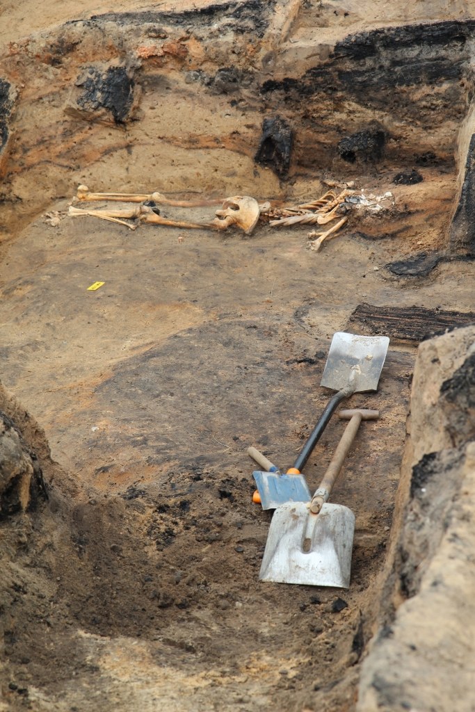 Szkielet człowieka, który zginął blisko 700 lat temu podczas zagłady jednego z najstarszych warmińskich miast odkryto w piwnicy spalonego w XIV wieku budynku. Warunki panujące w pogorzelisku spowodowały, że szczątki zachowały się w bardzo dobrym stanie. Pod zawaloną ścianą znaleźliśmy całkowicie zachowany szkielet. To jest istotne, ponieważ trzeba pamiętać, że mamy do czynienia z pierwszymi mieszkańcami Warmii. Szkielet ma całkowicie spaloną czaszkę, więc jakiś większy fragment płonącej konstrukcji musiał spaść na głowę. Ciało było na brzuchu, więc na pewno nie jest to pochówek rytualny, tylko ofiara najazdu. Oczywiście jest pytanie, czy jeszcze gdzieś tego typu szczątki znajdziemy - powiedział naszemu reporterowi dr Arkadiusz Koperkiewicz, kierownik badań z Instytutu Archeologii Uniwersytetu Gdańskiego.