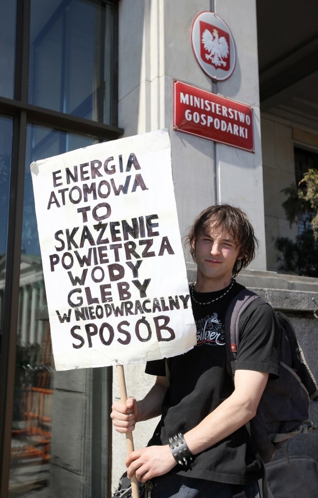 Po konferencji kilkudziesięciu antyatomowych aktywistów zgromadziło się przed budynkiem Ministerstwa Gospodarki, protestując przeciwko planom rządu. "Tusk do Czernobyla, Sejm do reaktora" - można było przeczytać na afiszach. Rozdawano też ulotki ze sprzeciwami wobec energetyki atomowej. Po godzinnym proteście demonstranci przy dźwiękach rapowanej, antyatomowej piosenki ruszyli pod kancelarię premiera, a potem pod ambasady Ukrainy i Japonii.