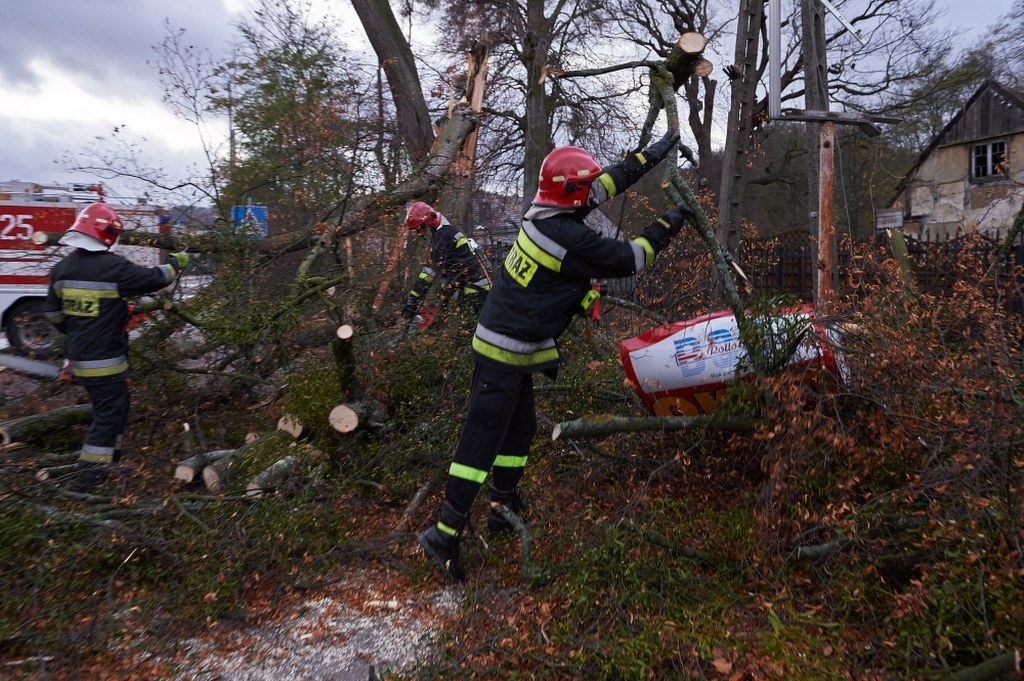 Ranny został też strażak, który usuwał drzewo w Pużycach koło Wejherowa. Mężczyzna ma uraz nogi. Trafił do szpitala. Na Pomorzu, przy usuwaniu drzew, rannych zostało w niedzielę dwóch innych strażaków - w tym jeden ochotnik.