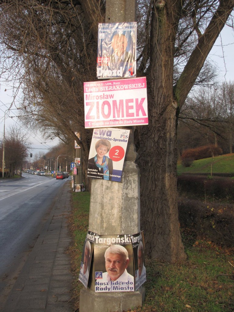 Wystawiono pierwsze faktury za nielegalne wywieszanie plakatów wyborczych we Wrocławiu. W stolicy Dolnego Śląska tamtejszy zarząd dróg i mostów dziennie wykrywa około 40 takich przypadków. Rachunki od kilkudziesięciu złotych do nawet kilku tysięcy już zostały wysłane.