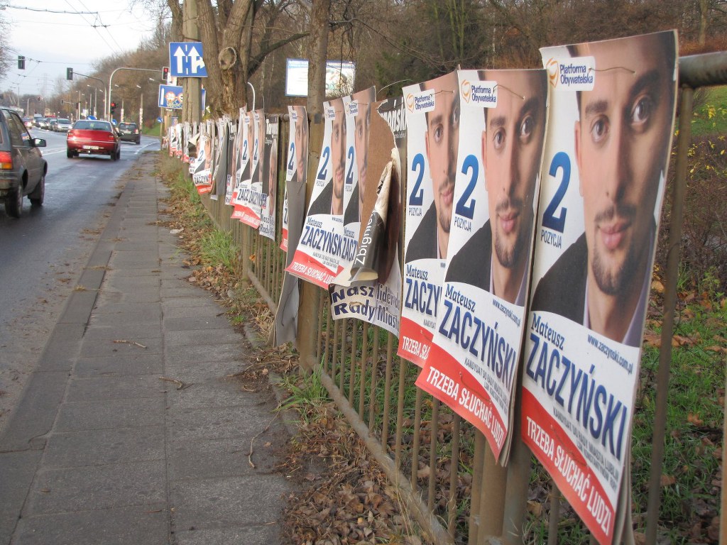 Na szczycie czarnej listy nielegalnie rozwieszonych plakatów we Wrocławiu są kandydaci Platformy Obywatelskiej. To podobizny kandydatów tej partii najczęściej nielegalnie wiszą na sygnalizatorach świetlnych, ulicznych latarniach czy przystankach.