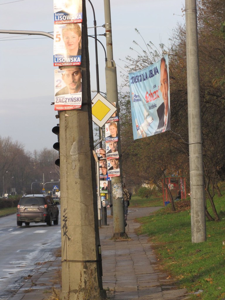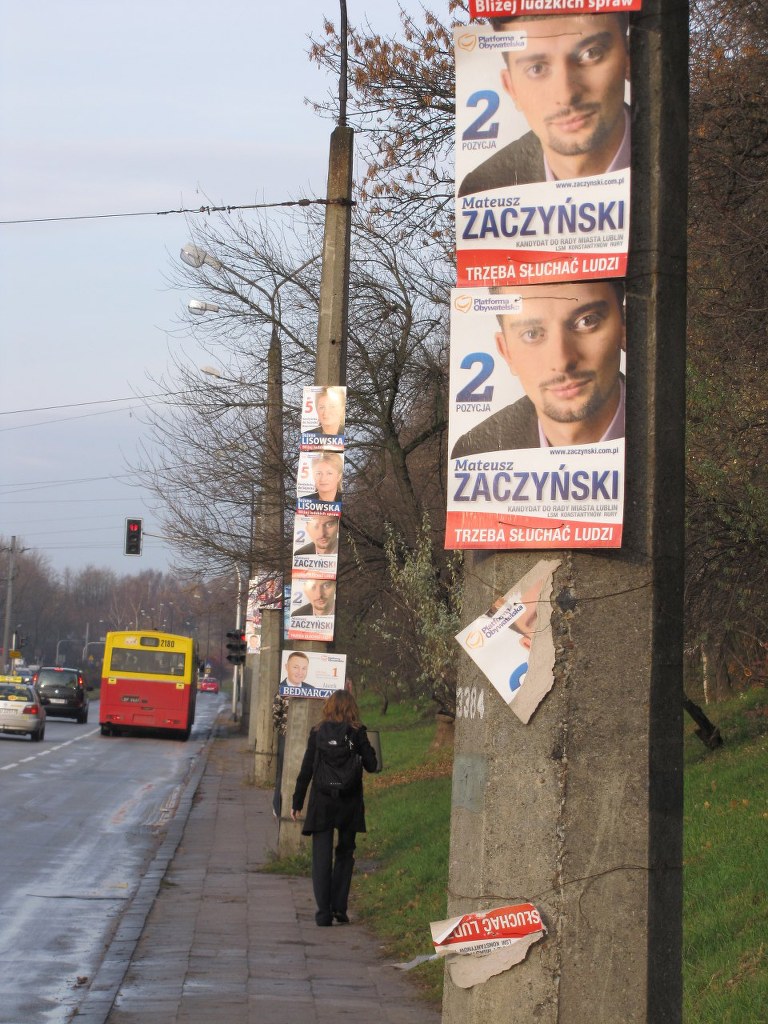 To przede wszystkim wolontariusze odpowiedzialni są za to, że plakaty wiesza tam gdzie wisieć nie powinni - mówił mi Marcin Wyszkowski. Czasami niestety przez własną niefrasobliwość czasem ta ręka pójdzie na jakąś skrzynkę energetyczną albo słup.
