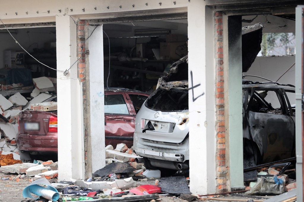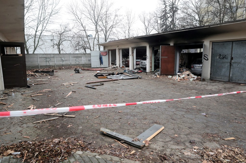 "W wyniku eksplozji uszkodzeniu uległy ścianki działowe, bramy garażowe i część dachu budynku garażowego. Spaliły się cztery auta" - powiedział.