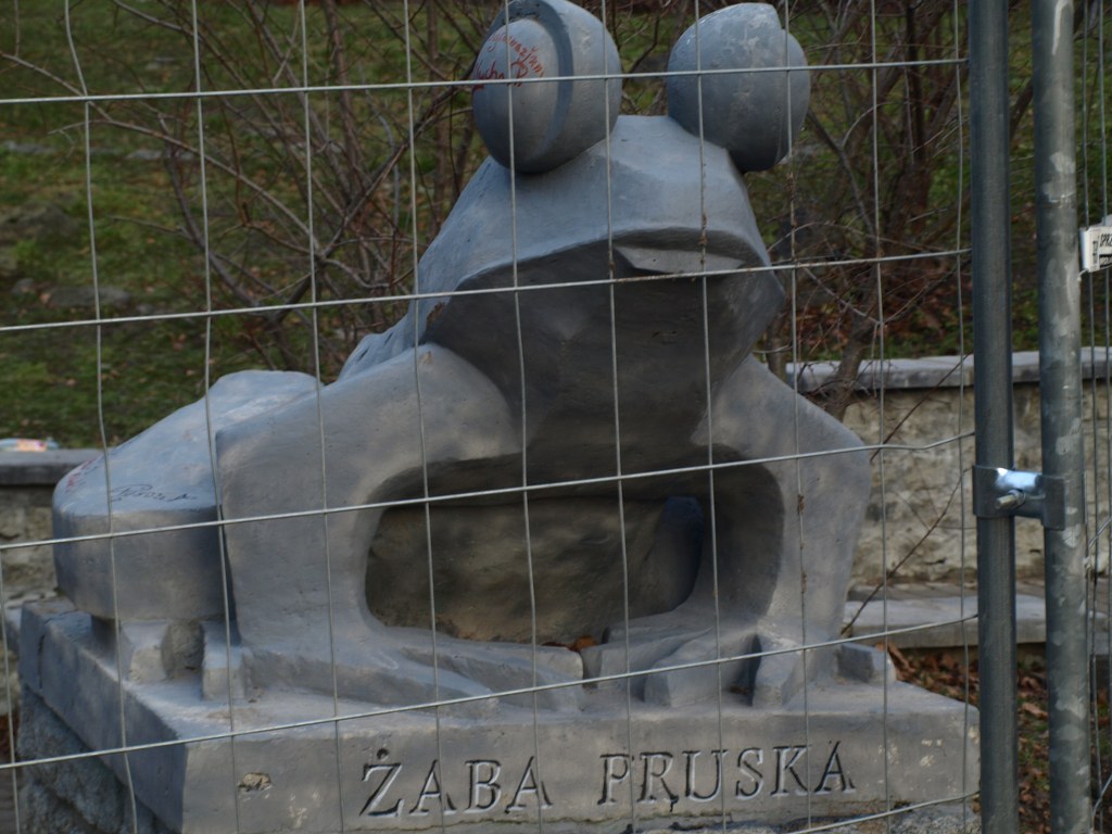 Na pomniku żaby w jednym z parków w Olsztynie w nocy pojawił się napis "Żaba Pruska". To z jednej strony nawiązanie do Bab Pruskich, promowanych przez władze Olsztyna jako symbol regionu, z drugiej złośliwy komentarz do "zrobienia żaby na szaro" przez olsztyńskich urzędników.
