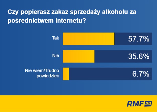 Co ciekawe, Polacy zdają się akceptować zakaz sprzedaży napojów alkoholowych przez internet (odpowiedź "tak" zaznaczyło prawie 58 proc. ankietowanych). To oczywiście może mieć związek z faktem, że alkohol mogliby przez internet kupować także nieletni.