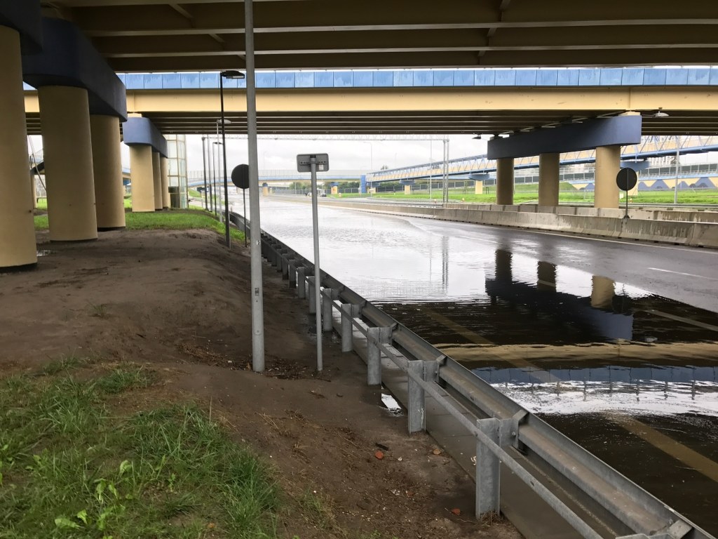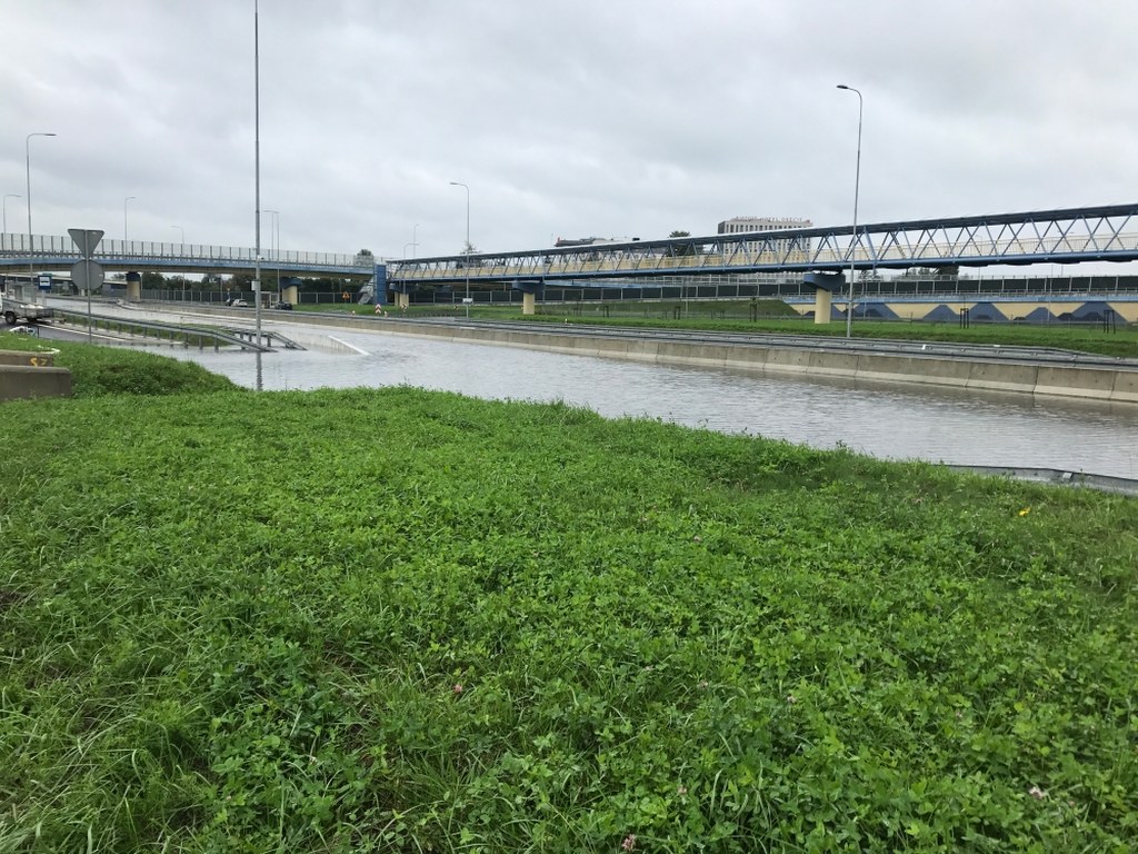 Rozlewisko to efekt deszczu, który przez całą noc padał w Warszawie. Kierowcy nie wjadą w trasę pod ul. Marynarską ani od strony Żwirki i Wigury, ani od strony Rzymowskiego.