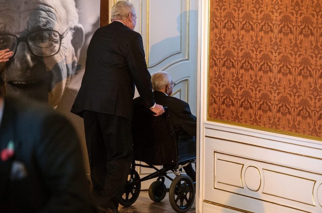 Ze względów zdrowotnych 105-letni Brytyjczyk spędził w Pradze tylko kilka godzin. Order wręczył mu na Zamku Praskim czeski prezydent Milosz Zeman.