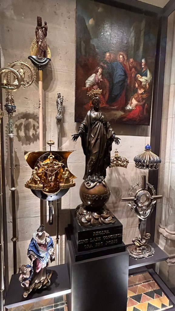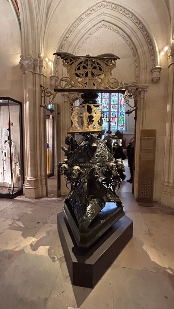 Kiedy zwiedzamy główną nawę odbudowanej katedry Notre-Dame, można nie zauważyć niewielkiego wejścia do zakrystii – a to właśnie tam znajdują się najcenniejsze eksponaty. Wśród nich są m.in. wysadzane diamentami relikwiarze stworzone, by chronić takie relikwie, jak Korona Cierniowa Jezusa, fragment Świętego Krzyża i gwóźdź z ukrzyżowania. Można też tam zobaczyć tunikę Świętego Ludwika oraz szatę liturgiczną stworzoną dla Jana Pawła II z okazji Światowych Dni Młodzieży w 1997 roku przez sławnego paryskiego projektanta mody Jean-Charlesa de Castelbajaca.