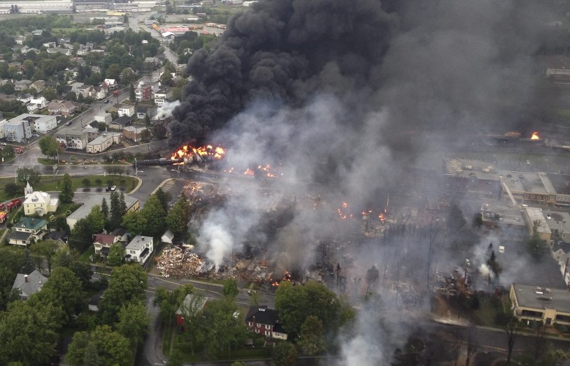 Złożony z pięciu lokomotyw i 72 wagonów-cystern pociąg, który przewoził ropę z amerykańskiego stanu Północna Dakota do wschodniej Kanady, wykoleił się w centrum Lac-Megantic w sobotę po godzinie 1 w nocy czasu lokalnego. Cztery zawierające po ponad 100 tys. litrów ropy cysterny zapaliły się i wybuchły. W momencie katastrofy w pociągu nie było maszynisty, który zgodnie z przepisami odstawił pociąg na noc i wysiadł. Na razie nie wiadomo, dlaczego skład ruszył.