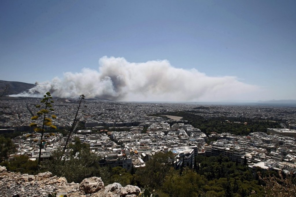 Pożary zarośli nękają także przedmieścia Aten - w piątek nad grecką stolicą pojawił się gęsty dym.