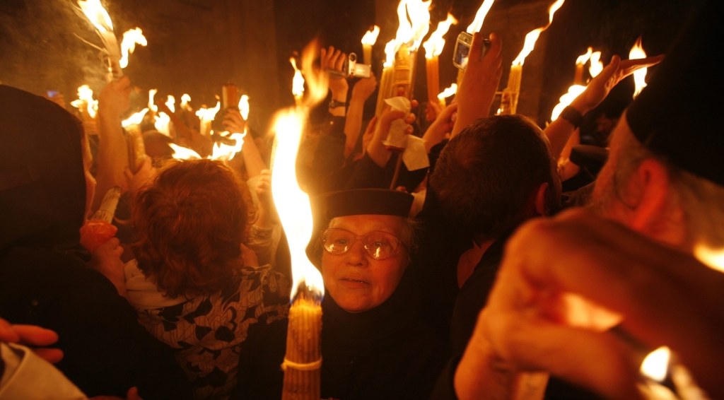 Dziesiątki tysięcy prawosławnych wiernych z pochodniami i świecami wzięło udział w ceremonii zstąpienia Świętego Ognia w Jerozolimie. Święty Ogień symbolizuje zmartwychwstanie Chrystusa. Pojawia się na Grobie Pańskim w sobotę, w wigilię prawosławnej Wielkanocy, która w tym roku wypada w tym samym czasie, co w zachodnich Kościołach chrześcijańskich.