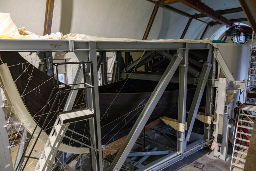 Sam proces przenoszenia okrętu z Gokstad to logistyczne i technologiczne wyzwanie na niespotykaną dotąd skalę. 23-metrową łódź osadzono w specjalnej stabilizującej ramie, która ma chronić jej delikatną strukturę podczas transportu. Przemieszczanie jednostki odbywa się z prędkością zaledwie 25 centymetrów na minutę, a każdy etap operacji jest na bieżąco monitorowany przez czujniki odkształceń oraz kamery 3D. Cała konstrukcja została zawieszona na stalowych podporach pod sufitem, co pozwala wyeliminować wszelkie drgania, mogące zagrozić integralności zabytku.