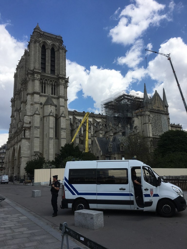Dostęp do katedry blokuje ze wszystkich stron policja. Turyści nie mogą się do niej zbliżać. Wokół budowli widać dźwigi i robotników ciągle wzmacniających mury i rzeźbione dekoracje.