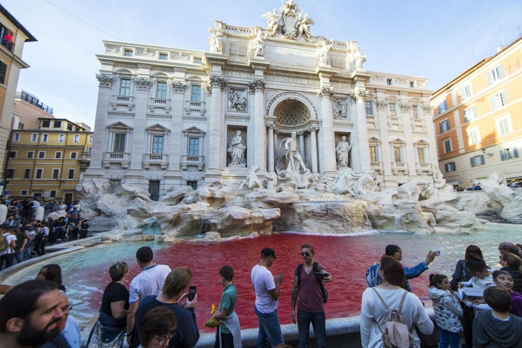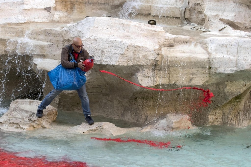 Sprawcą "happeningu" jest Graziano Cecchini, który sam nazywa się "artystą futurystą". Dokładnie to samo zrobił 10 lat temu. Wtedy również na oczach tysięcy turystów zgromadzonych wokół słynnego zabytku, wrzucił do wody puszkę z czerwoną farbą, co dało natychmiastowy spektakularny efekt.