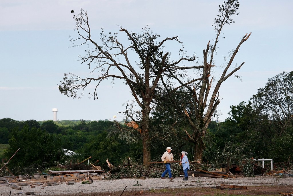 Wichury i ulewne deszcze zaczęły się w sobotę późnym popołudniem. Wczoraj tornada osiągały prędkość do 180 km. Trąby powietrzne operowały na obszarze obejmującym jednorazowo ok. 80 km - podaje Associated Press.