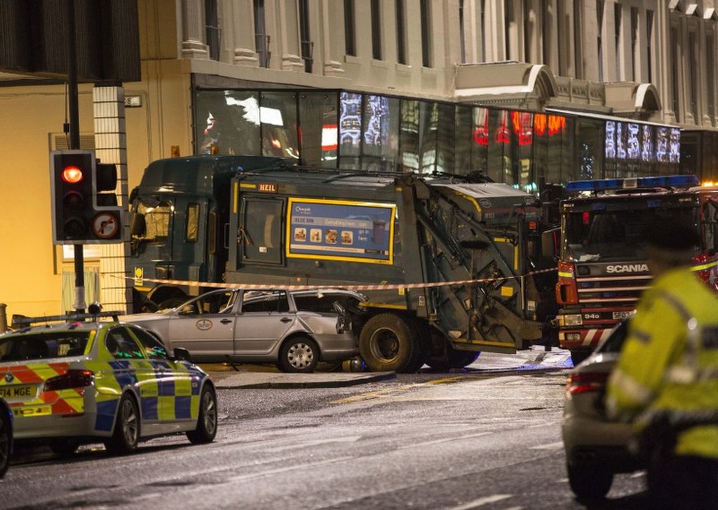 BBC informuje, że do wypadku doszło o godzinie 15:30 czasu polskiego. Według funkcjonariuszy i świadków, kierowca śmieciarki nagle zmienił tor jazdy i wjechał w stojących na przejściu ludzi. Potem wbił się w ścianę hotelu.