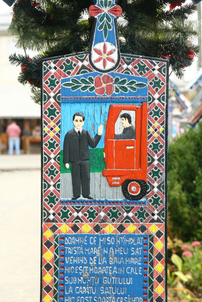 Gdy umiera mieszkaniec miasteczka, jego rodzina przychodzi do Tincu i prosi go o wykonanie krzyża. To on decyduje, co zostanie wymalowane i napisane na drewnie. Zmarli nie zabierają swoich tajemnic do grobu. Te specyficzne epitafia nie oszczędzają nikogo - artysta opisuje każdą niedoskonałość zmarłego. W małym miasteczku nic się nie ukryje – podkreśla Tincu.
