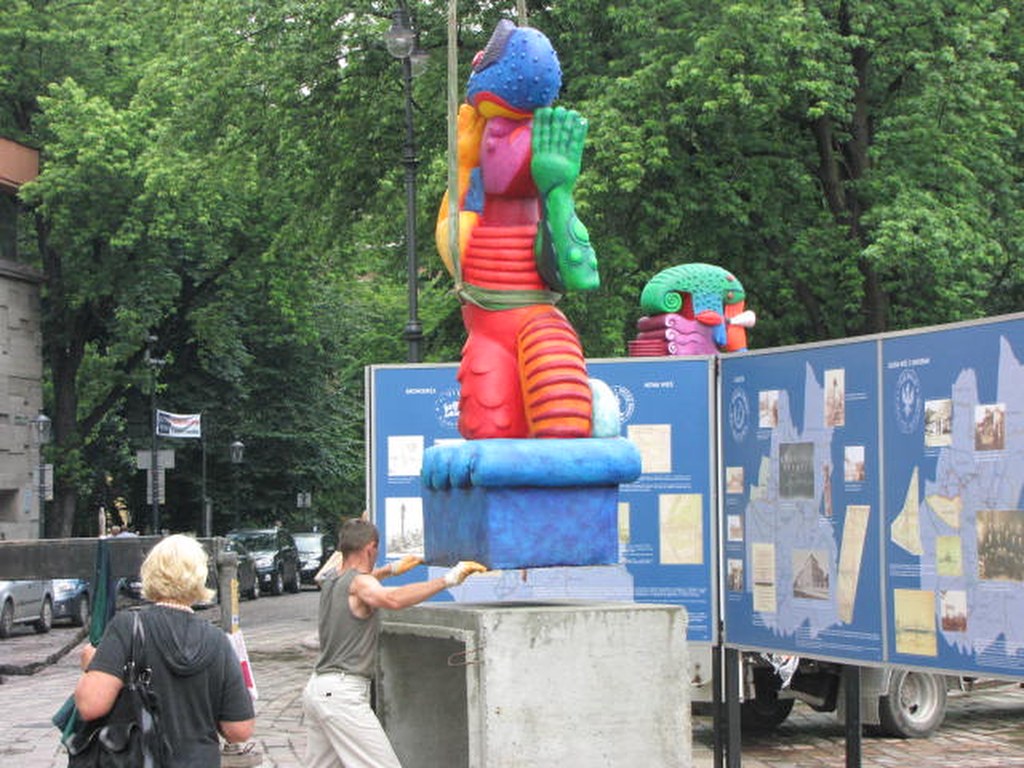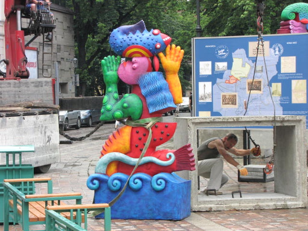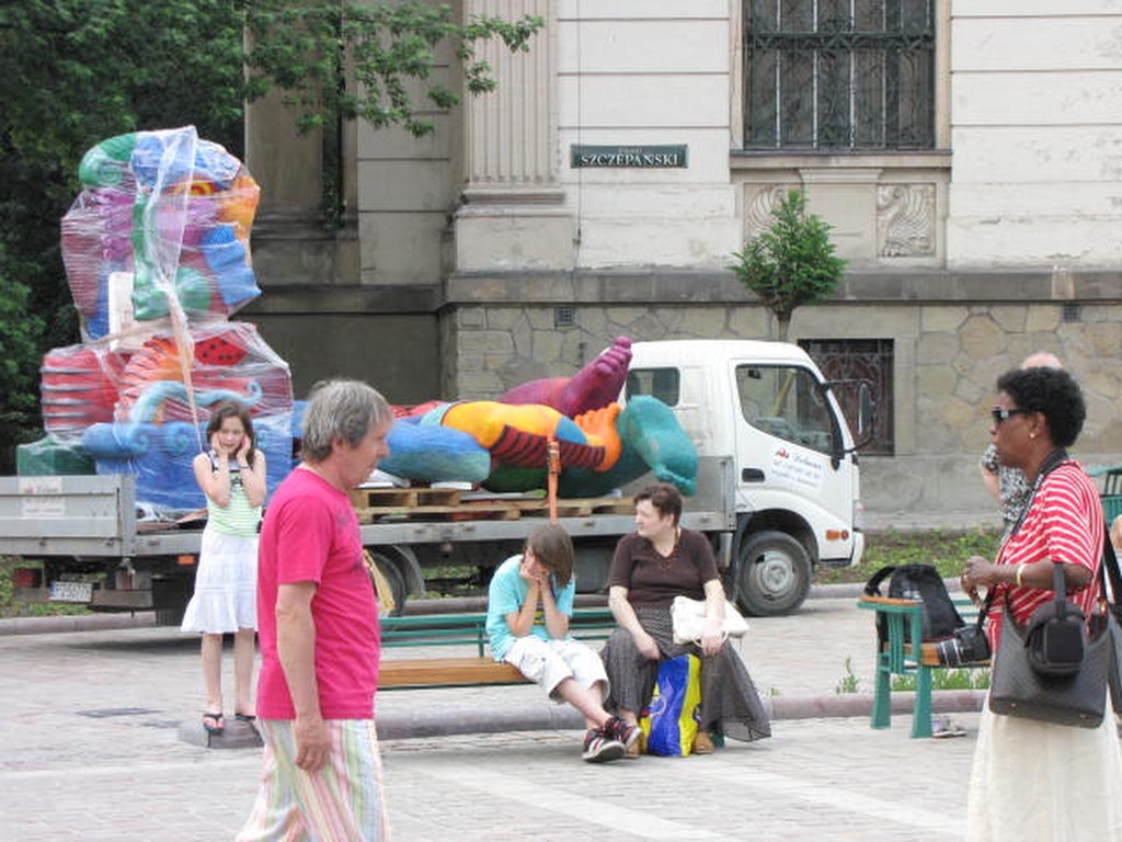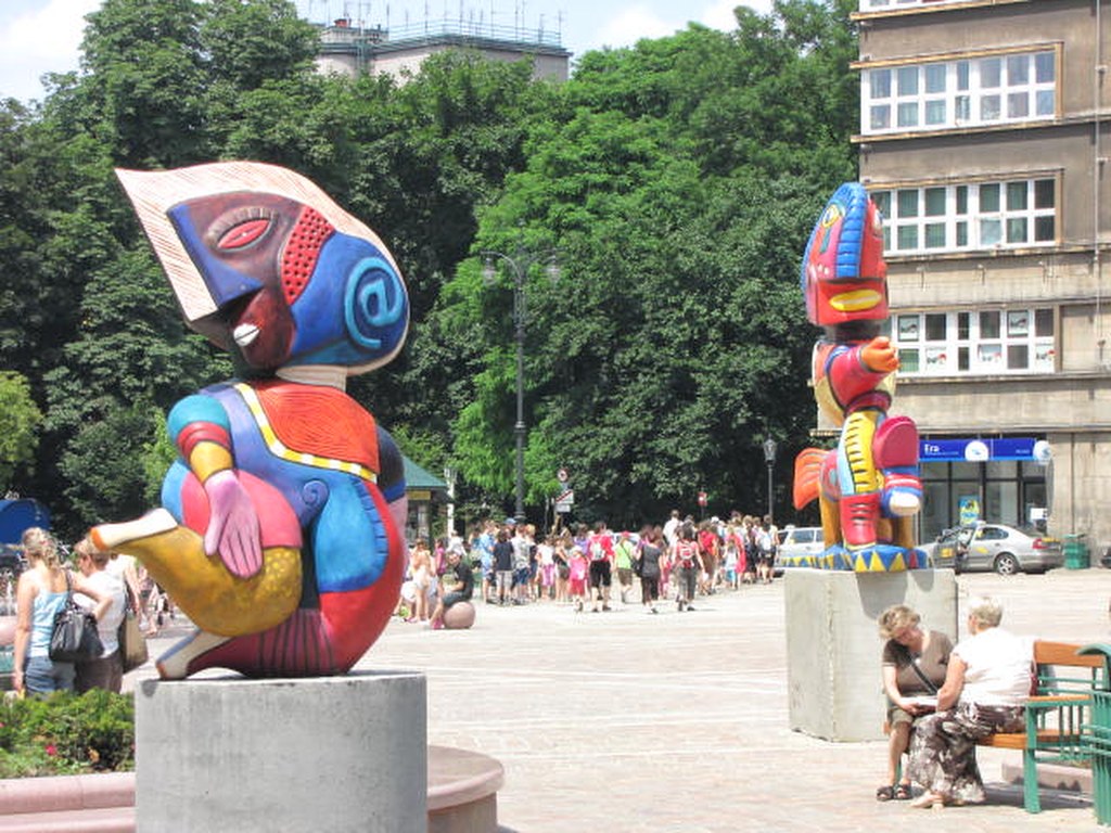 Kolorowa wystawa na placu Szczepańskim w Krakowie
