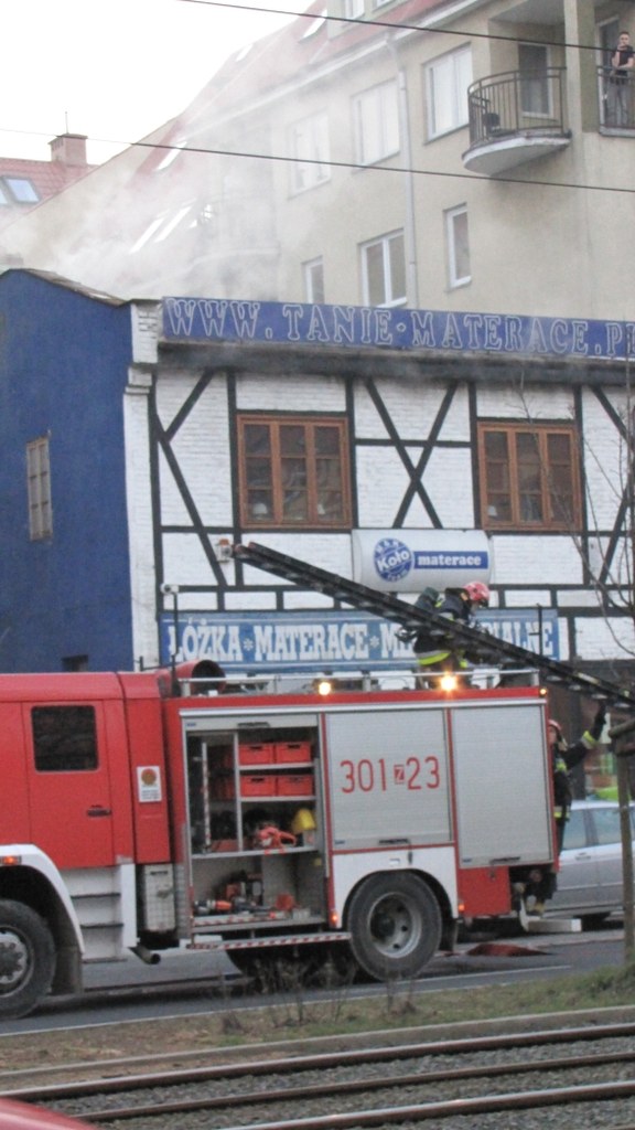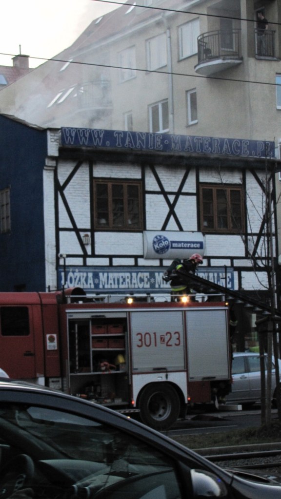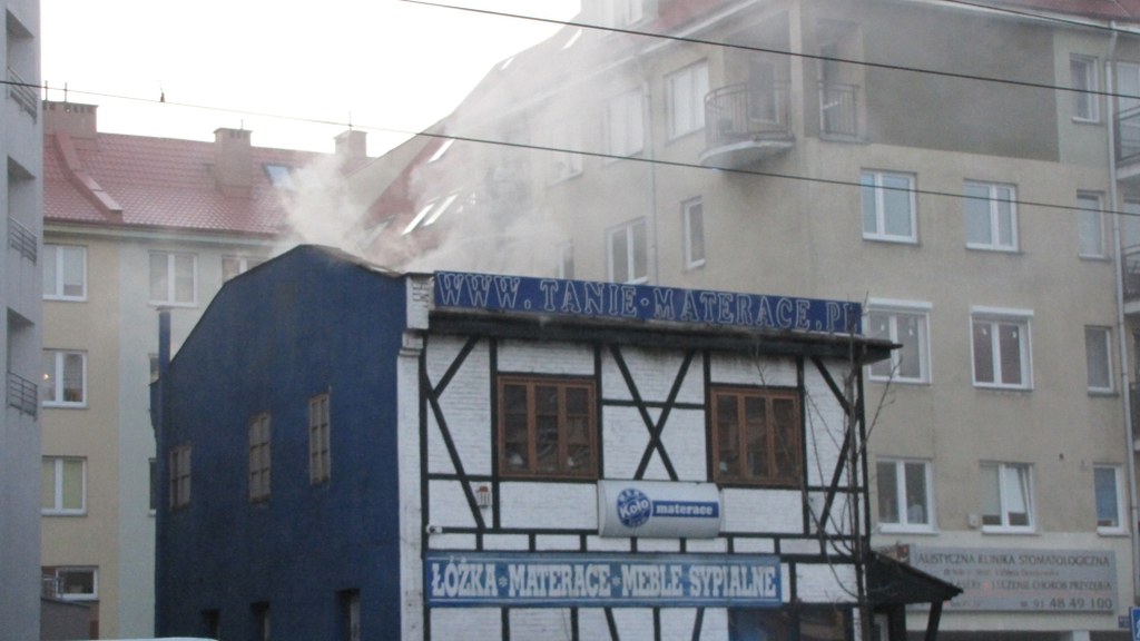 Pożar sklepu z materacami przy ul. Bohaterów Warszawy w Szczecinie. Ogień wybuchł ok. 19. Na zewnątrz budynku wydostawały się kłęby dymu. Na szczęście o tej porze obiekt był już nieczynny. Sklep mieści się w poniemieckim budynku o konstrukcji ryglowej. Właściciele obiektu starali się o wpisanie go do rejestru zabytków.