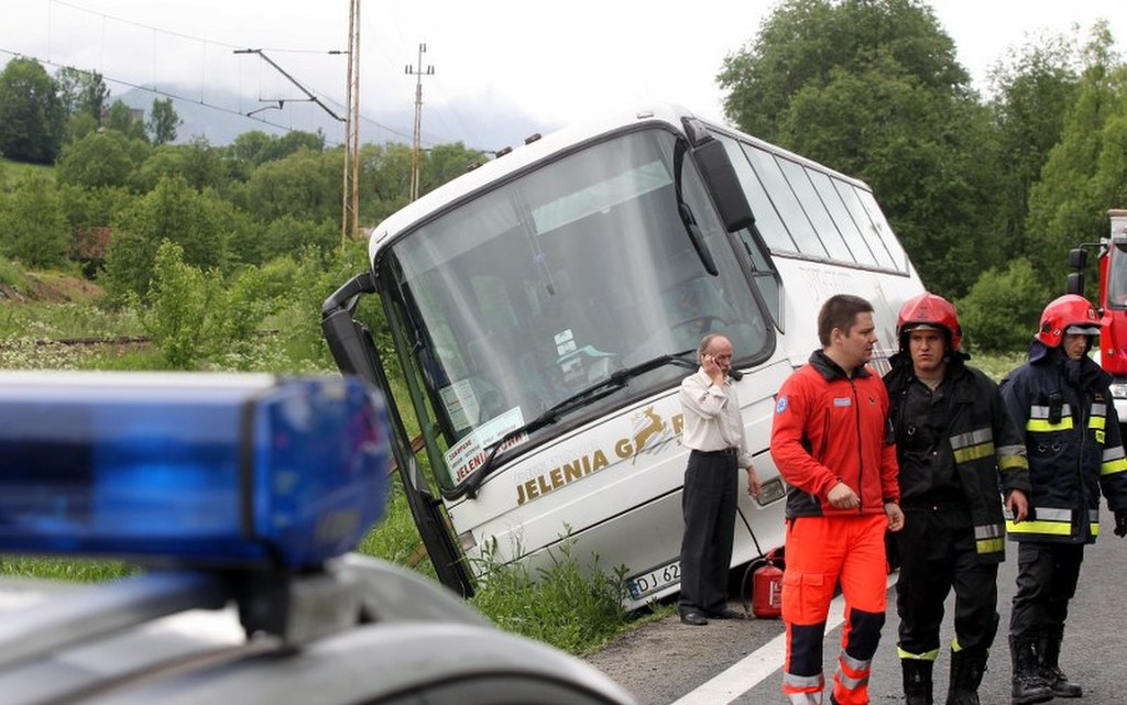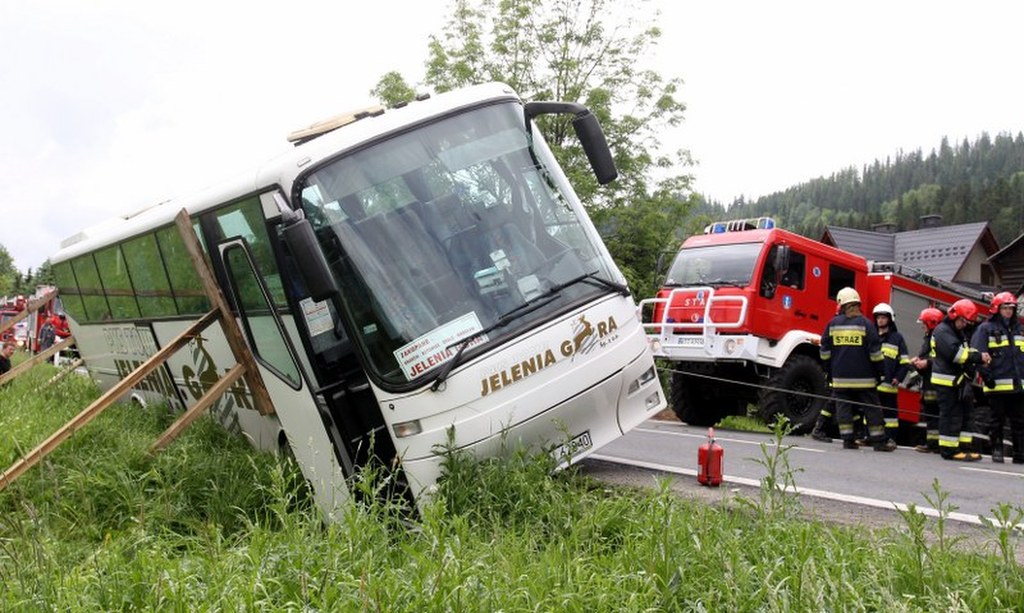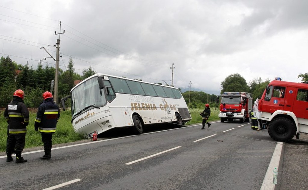 Do groźnie wyglądającego wypadku doszło na zakopiance. Kierowca autobusu relacji Zakopane - Jelenia Góra, chcąc ominąć samochód osobowy, zsunął się do rowu. Autobusem podróżowało 12 osób, nikomu nic się nie stało.