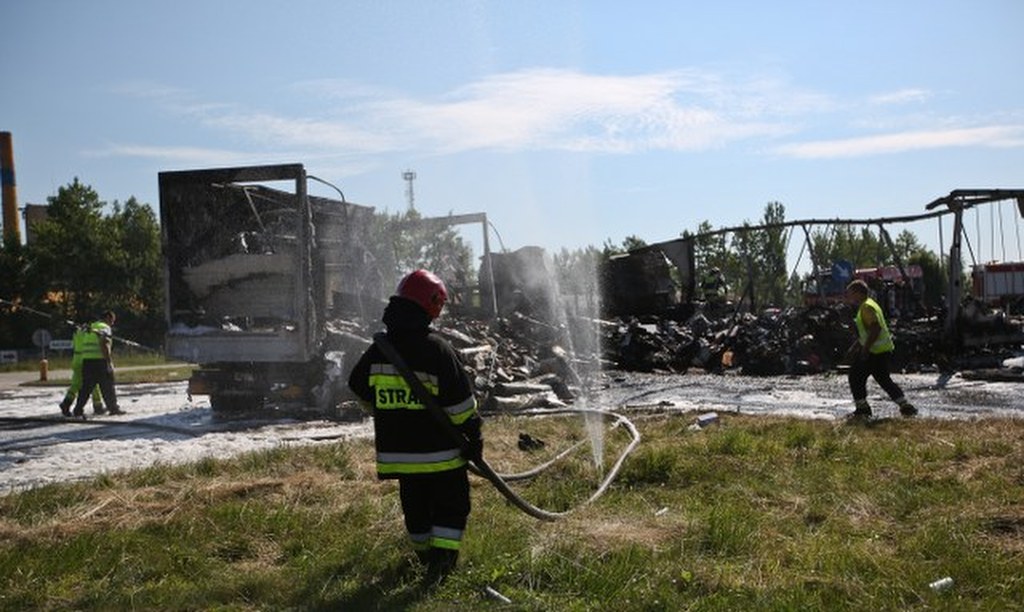 Ciężarówki w płomieniach na drodze krajowej nr 50
