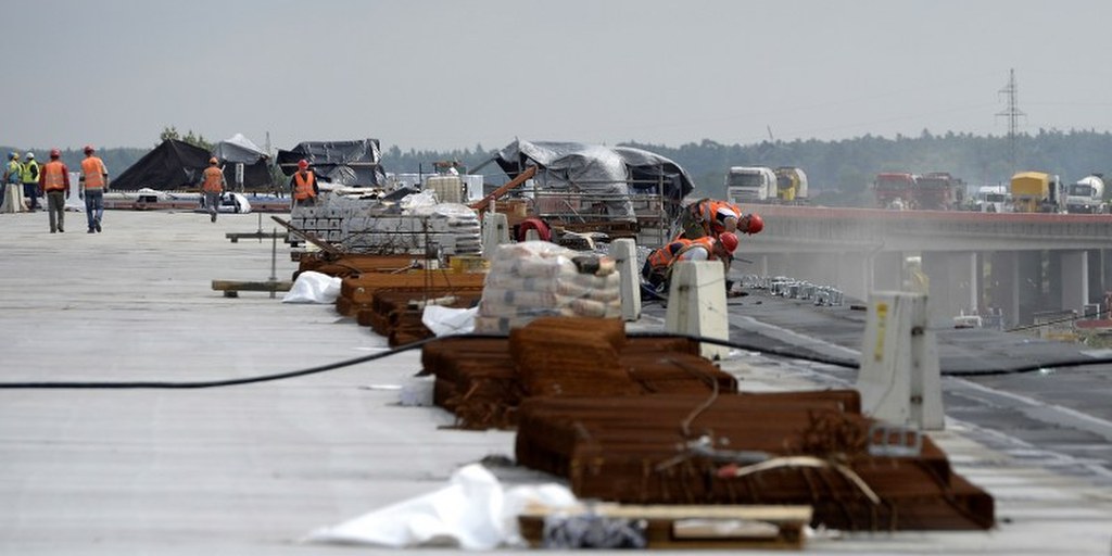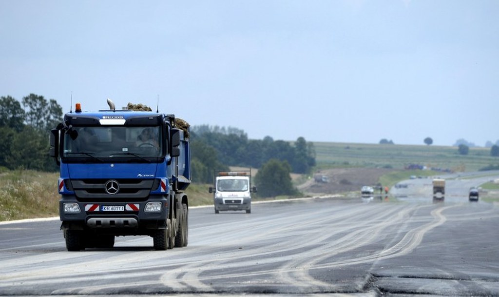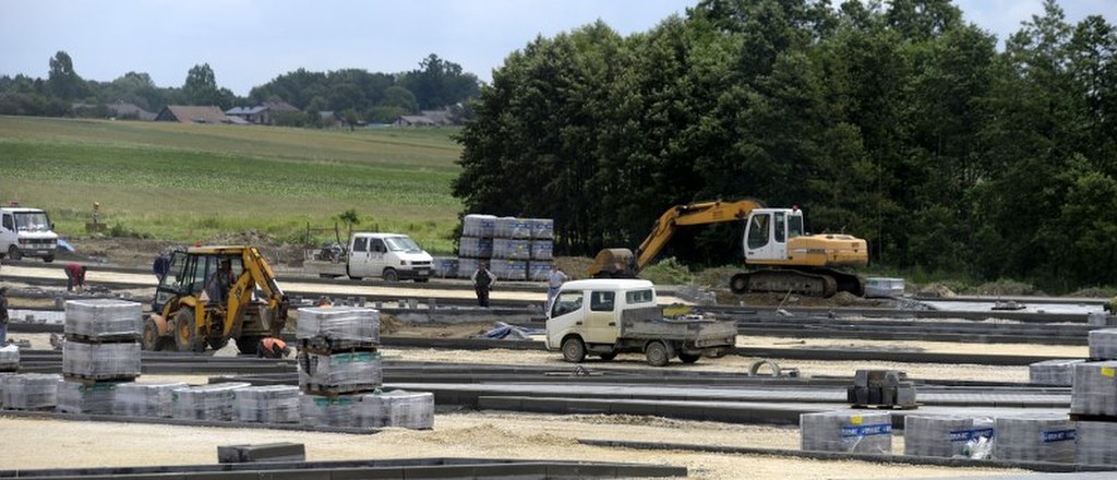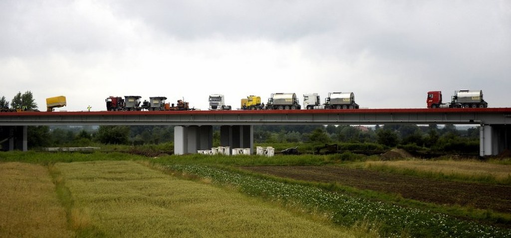 Prace budowlane na odcinku autostrady A4 Tarnów-Dębica w Żyrakowie, 1 bm. Niespełna 35-cio kilometrowa trasa ma być dostępna dla kierowców na przełomie września i października br. Wykonawcą odcinka jest konsorcjum Heilit Woerner i Budimex.