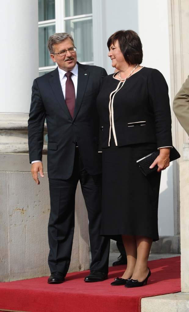 Nowo zaprzysiężony prezydent Bronisław Komorowski z żoną Anną przybyli do Belwederu. Do czasu zakończenia remontu w Pałacu Prezydenckim - Pałac w Parku Łazienkowskim będzie tymczasową siedzibą głowy państwa.