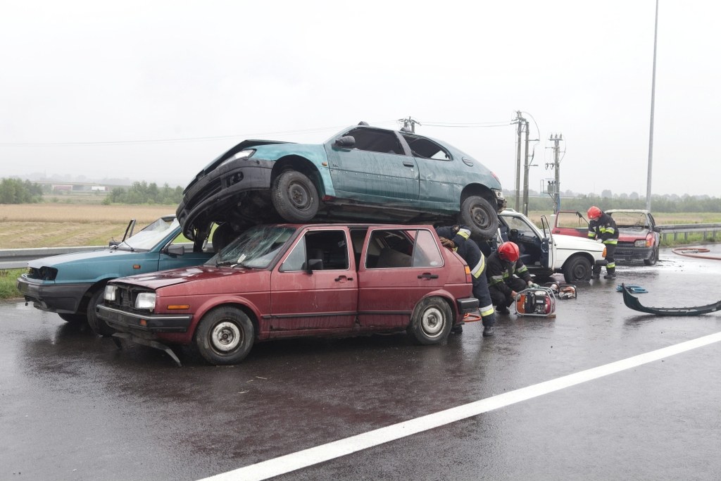 Według scenariusza, w wypadku, w którym uczestniczyło kilkanaście samochodów rannych zostało 16 osób, w tym kilkoro ciężko, dwie osoby zginęły. / PAP