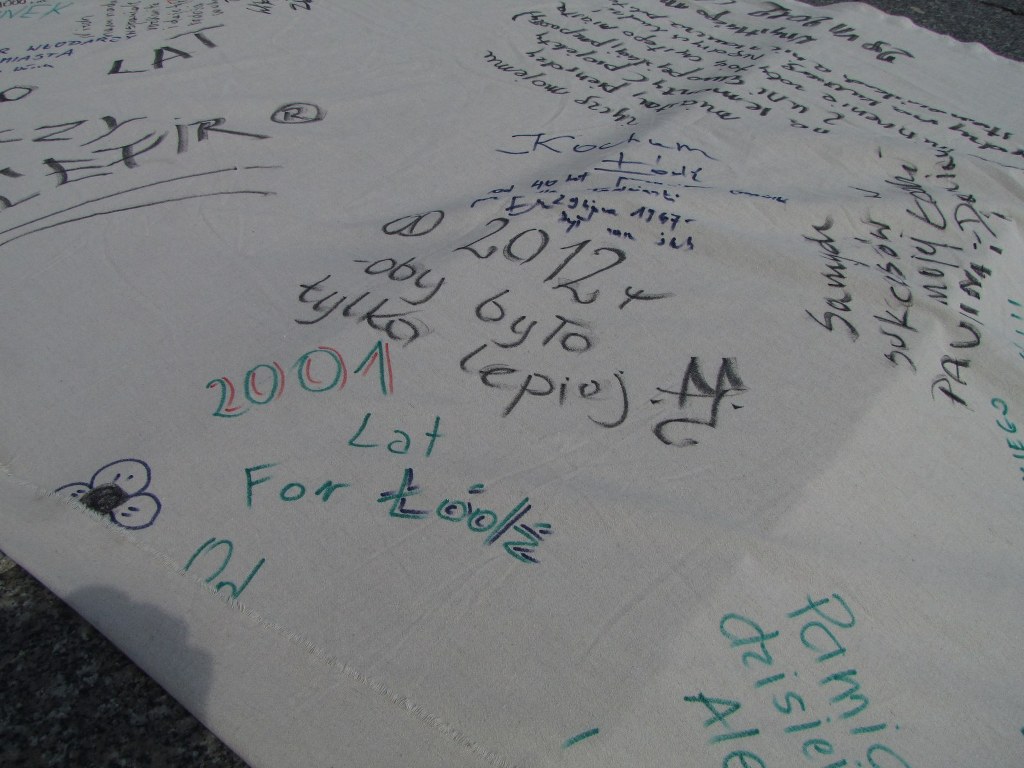 Z okazji 589 rocznicy uzyskania przez Łódź praw miejskich mieszkańcy miasta zorganizowali specjalną akcję „urodzinową”. Każdy mógł przyjść na łódzki plac wolności i zamieścić swoje życzenia na przygotowanej w tym celu wielkiej beli materiału. Po zakończeniu akcji zbierania winszowań, tę niecodzienną „laurkę” dla Łodzi będzie można oglądać w miejskich muzeach.