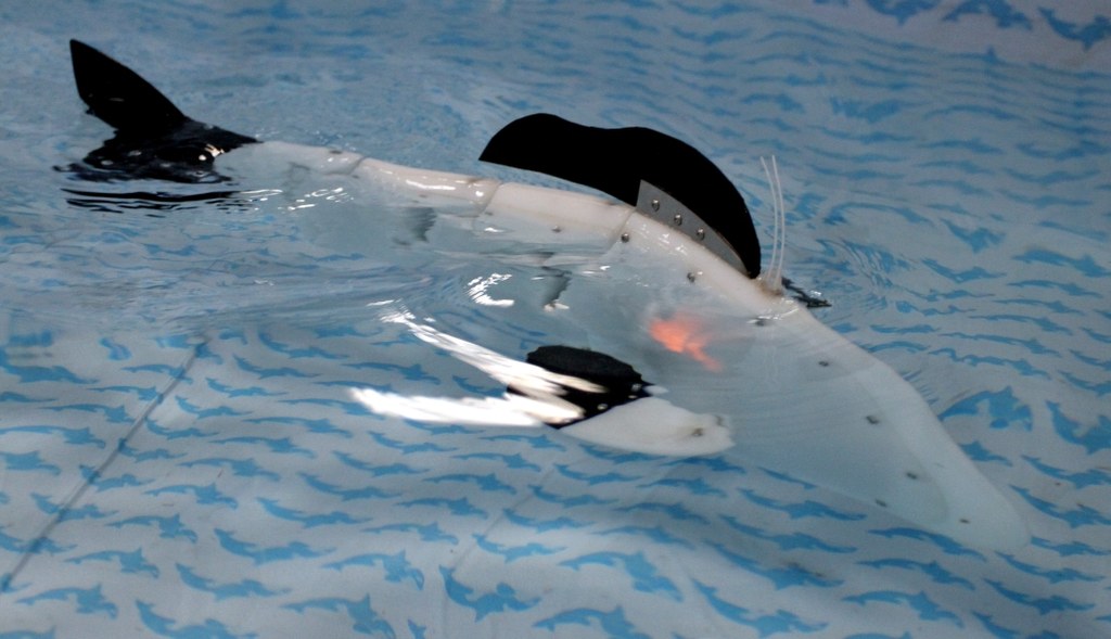 Pokaz CyberRyby, podwodnego robota mobilnego z napędem falowym. / PAP/EPA