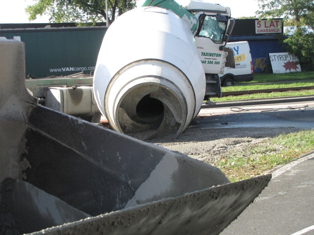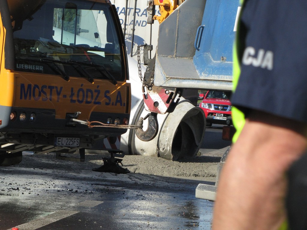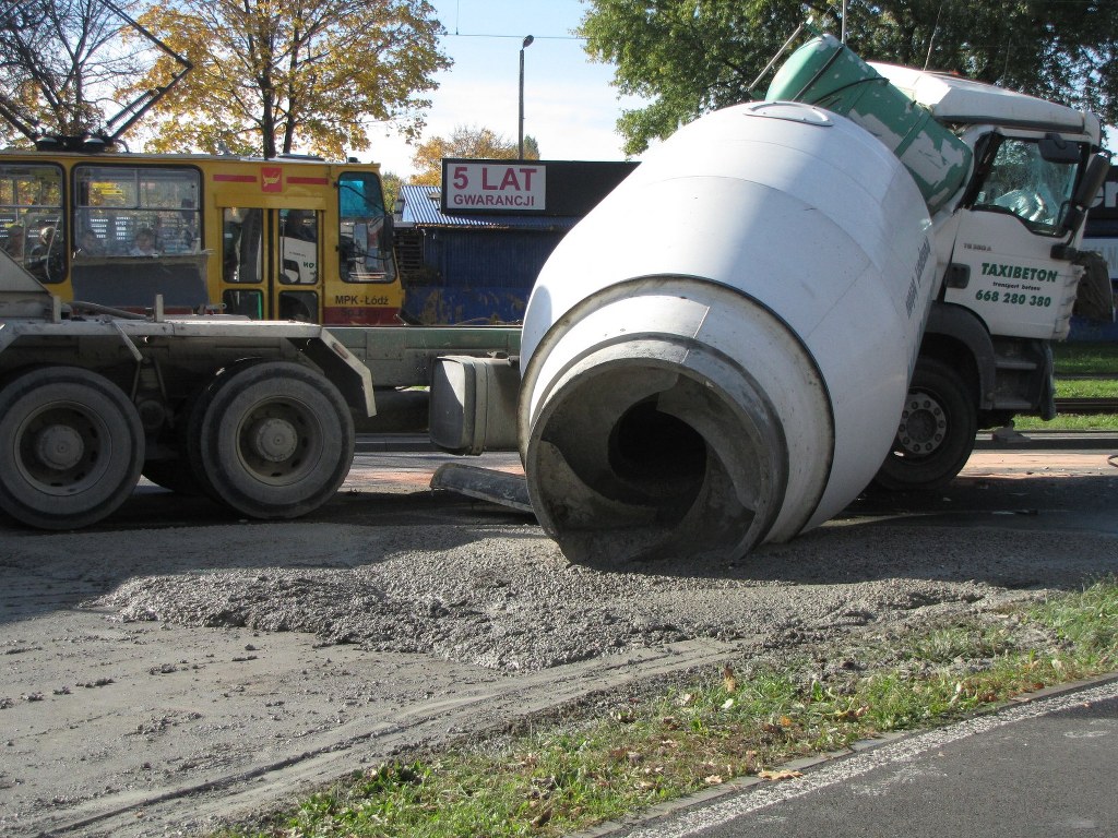Rozlany beton blokuje przejazd "jedynką" w Łodzi