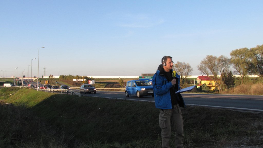 Reporter RMF FM na drodze krajowej numer 6 w Lęborku / fot. Dariusz Proniewicz / RMF FM