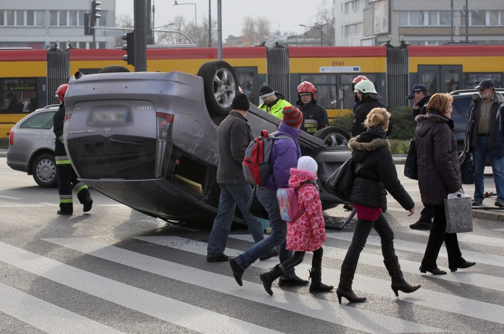 W tle widać skodę, która zderzyła się z mitsubishi / fot. PAP/ Paweł Supernak