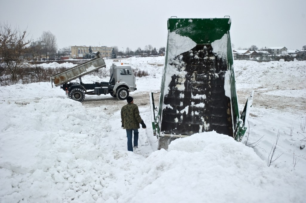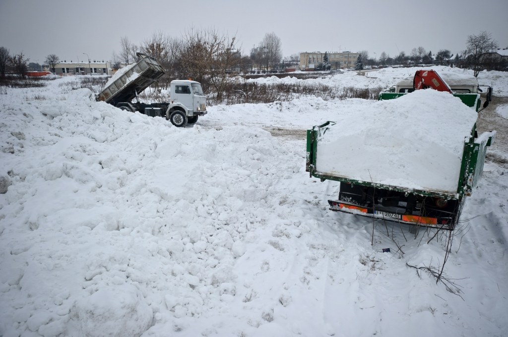 Składowisko śniegu wywożonego z terenu Lublina. Szacuje się, że trafiło tam do tej pory około 1200 ton śniegu.