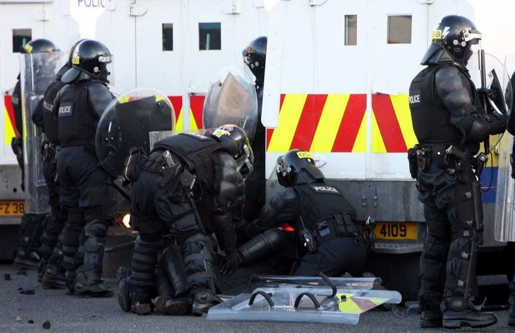 Policja przygotowująca się do starcia z brytyjskimi lojalistami / fot. PAUL FAITH (PAP/EPA)