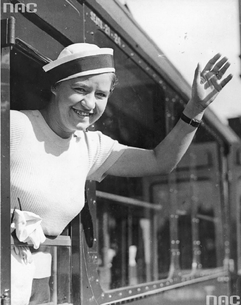 Tenisistka Jadwiga Jędrzejowska w drodze do Stanów Zjednoczonych na Międzynarodowy Turniej Tenisa Ziemnego. / fot. Narodowe Archiwum Cyfrowe