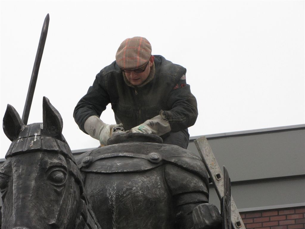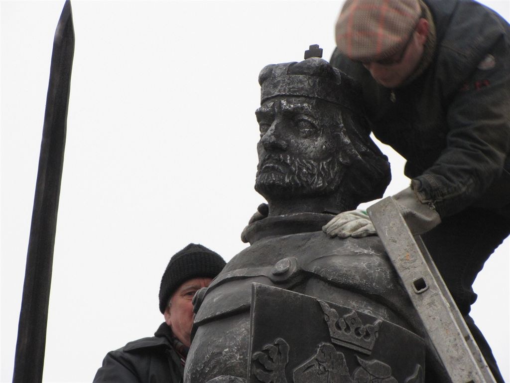 Artysta wymienia głowę pomnikowi księcia / fot. Tomasz Fenske / RMF FM