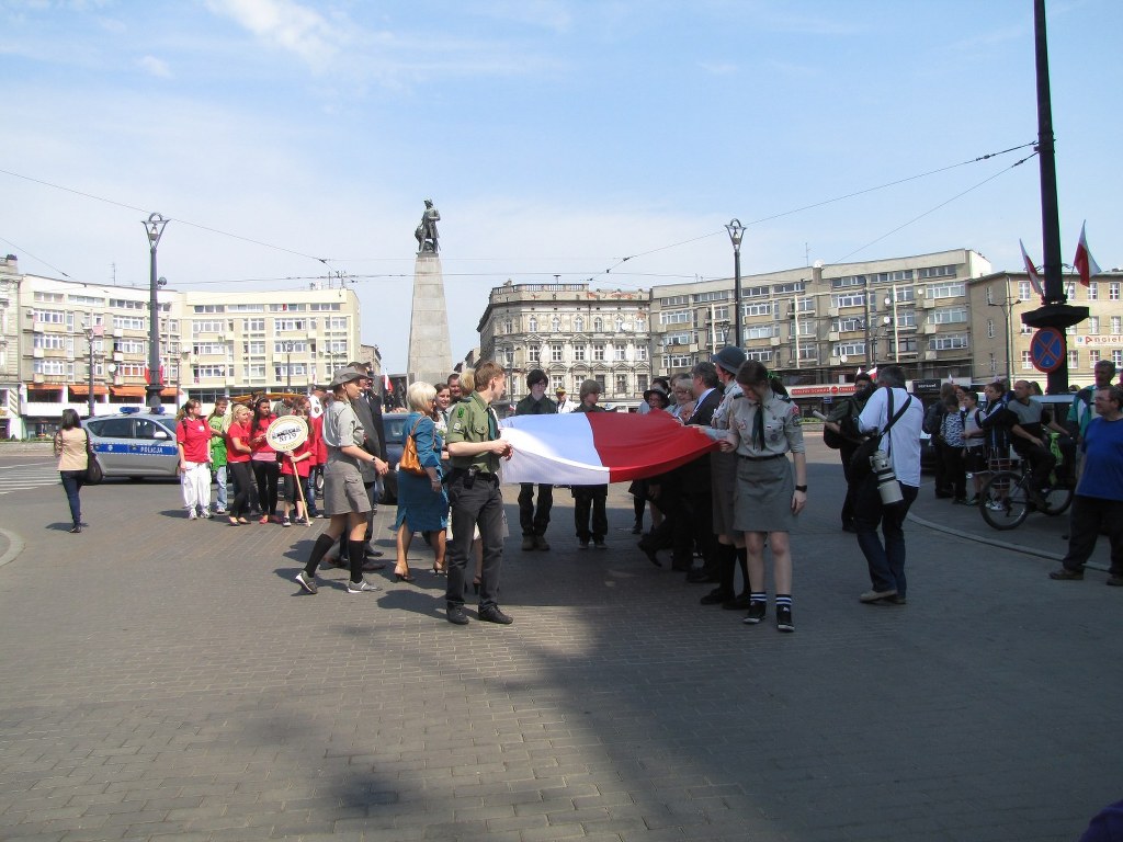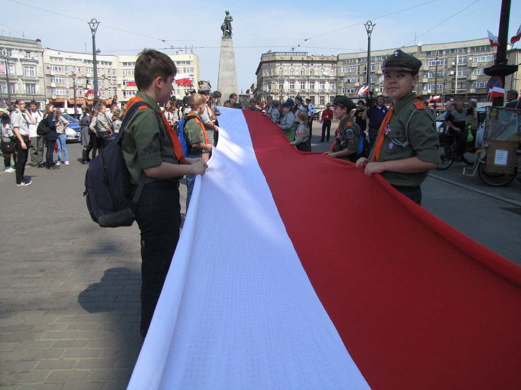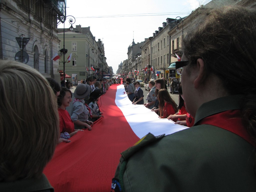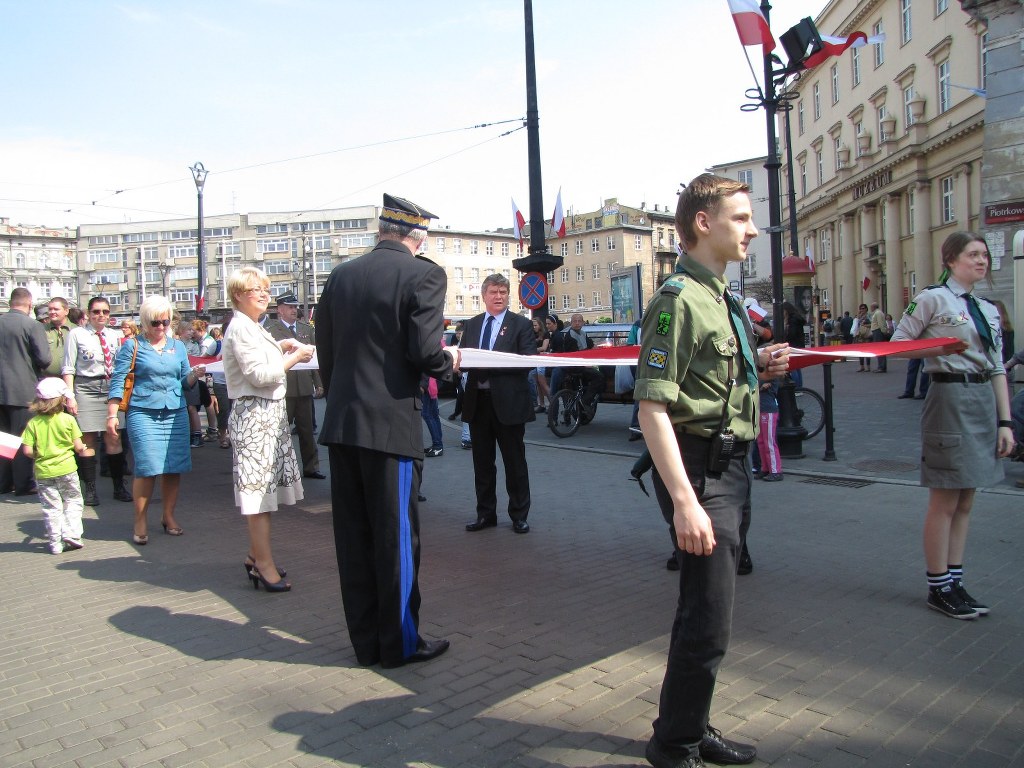 Łodzianie uczcili Dzień Flagi radosnym pochodem. Biało-czerwony korowód wraz z 123-metrową flagą przemaszerował pod Urząd Miasta Łodzi. Tam trębacz zagrał hymn miasta "Prząśniczkę", którą uczestnicy pochodu także wspólnie odśpiewali.