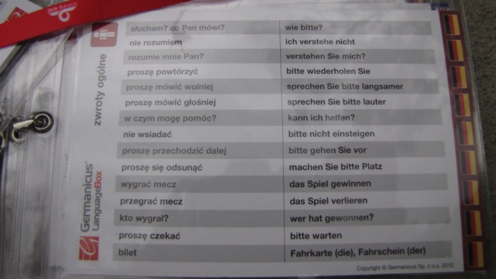 Na kartach znajdują się podstawowe zwroty po angielsku i po niemiecku / fot. Kuba Kaługa / RMF FM
