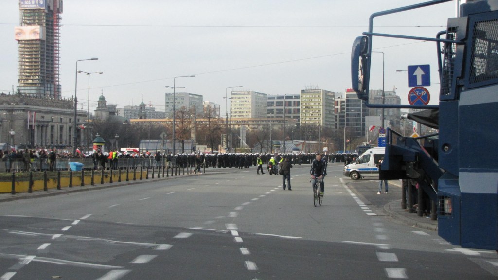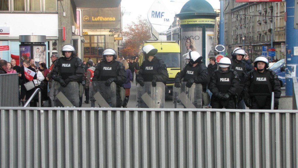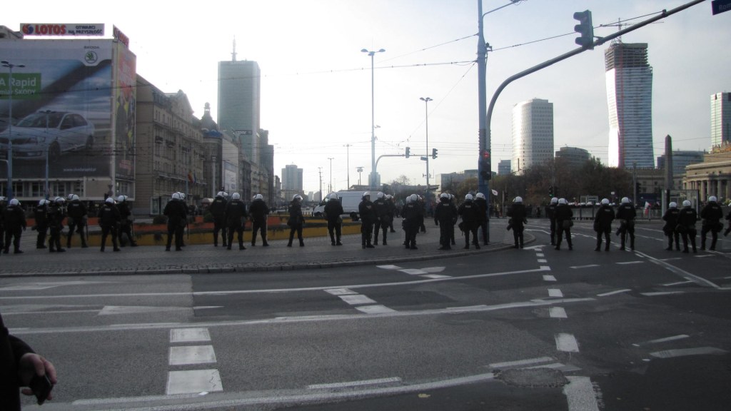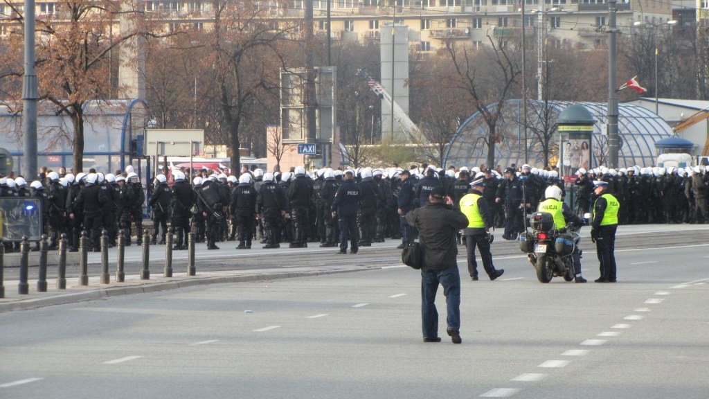 Ogromne siły policyjne zmobilizował organizowany przez środowiska prawicowe Marsz Niepodległości pod hasłem "Odzyskajmy Polskę". Narodowcy zaplanowali trasę pochodu od ronda Dmowskiego do pomnika Romana Dmowskiego przy placu Na Rozdrożu.
