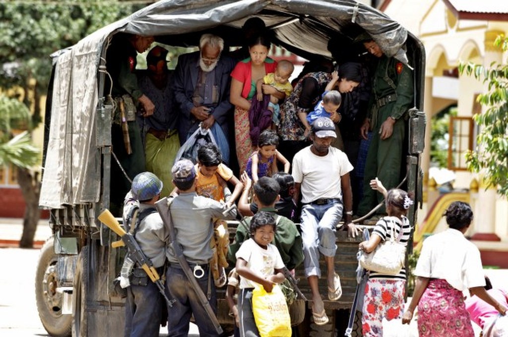 Akcja ewakuacji rodzin muzułmańskich do tymczasowego schronu w klasztorze w Lashio. / fot. NYEIN CHAN NAING (PAP/EPA)