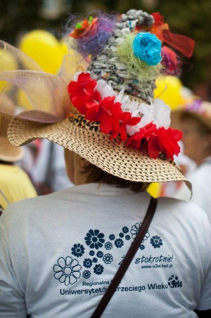 Przemarsz Kapeluszowy - barwny korowód seniorów w fantazyjnych nakryciach głowy, który uświetnił Juwenalia Senioralne przeszedł ulicami Bydgoszczy.