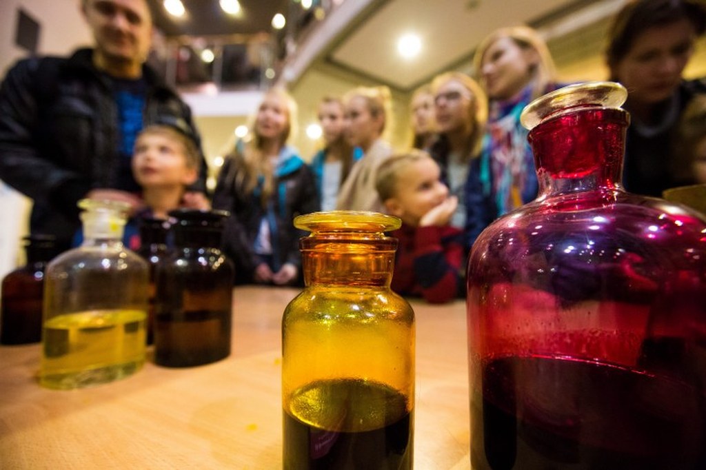 Eksperymenty naukowe w Centrum Wykładowym Politechniki Poznańskiej. Noc Naukowców to ogólnoeuropejska inicjatywa, podczas której w ośrodkach akademickich odbywają się imprezy popularno-naukowe i rozrywkowe przeznaczone zarówno dla dzieci, jak i dorosłych.